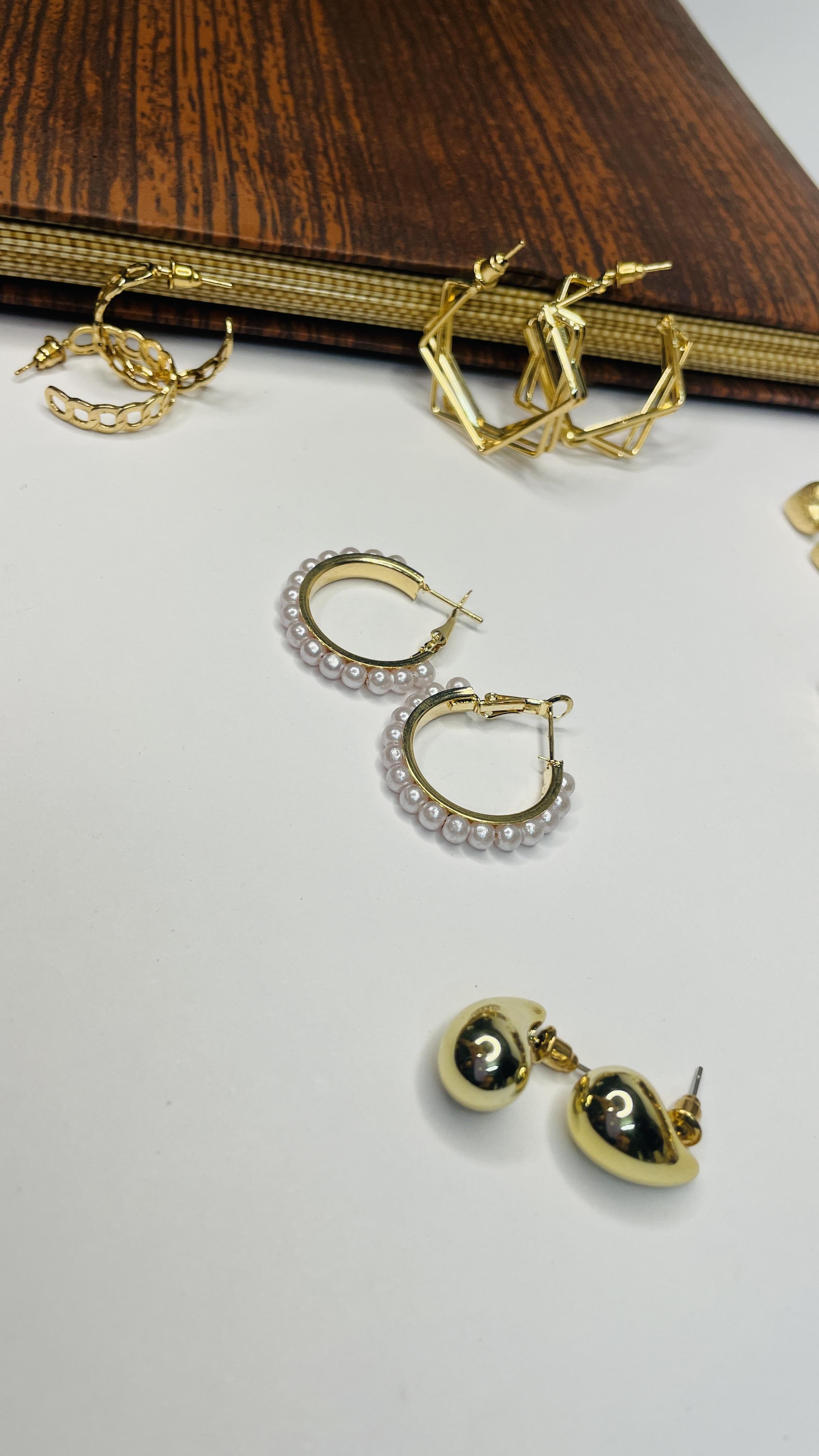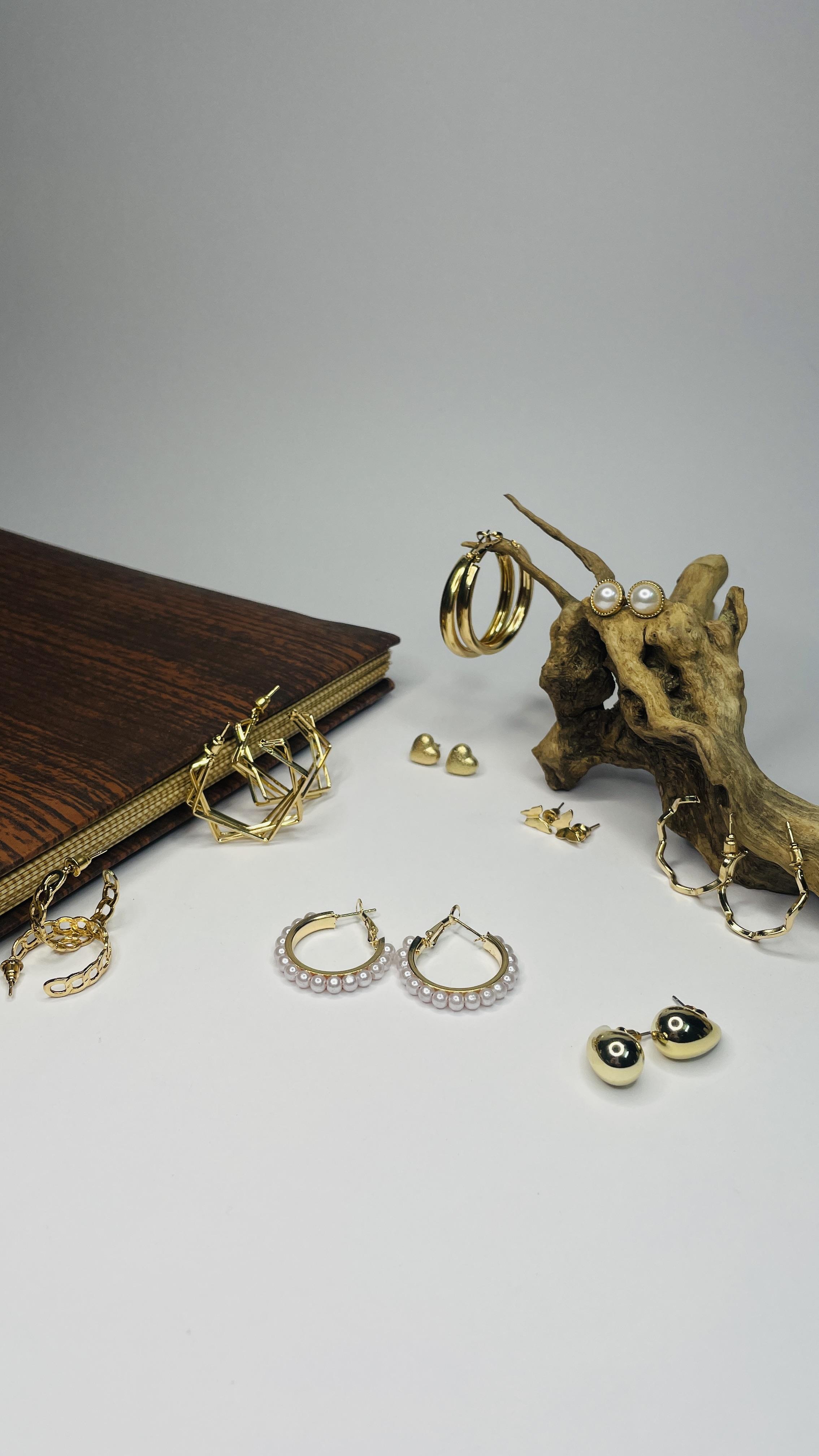 - 9 Unique Pairs in One Set – Includes hoops, studs, geometric shapes, pearls & textured styles