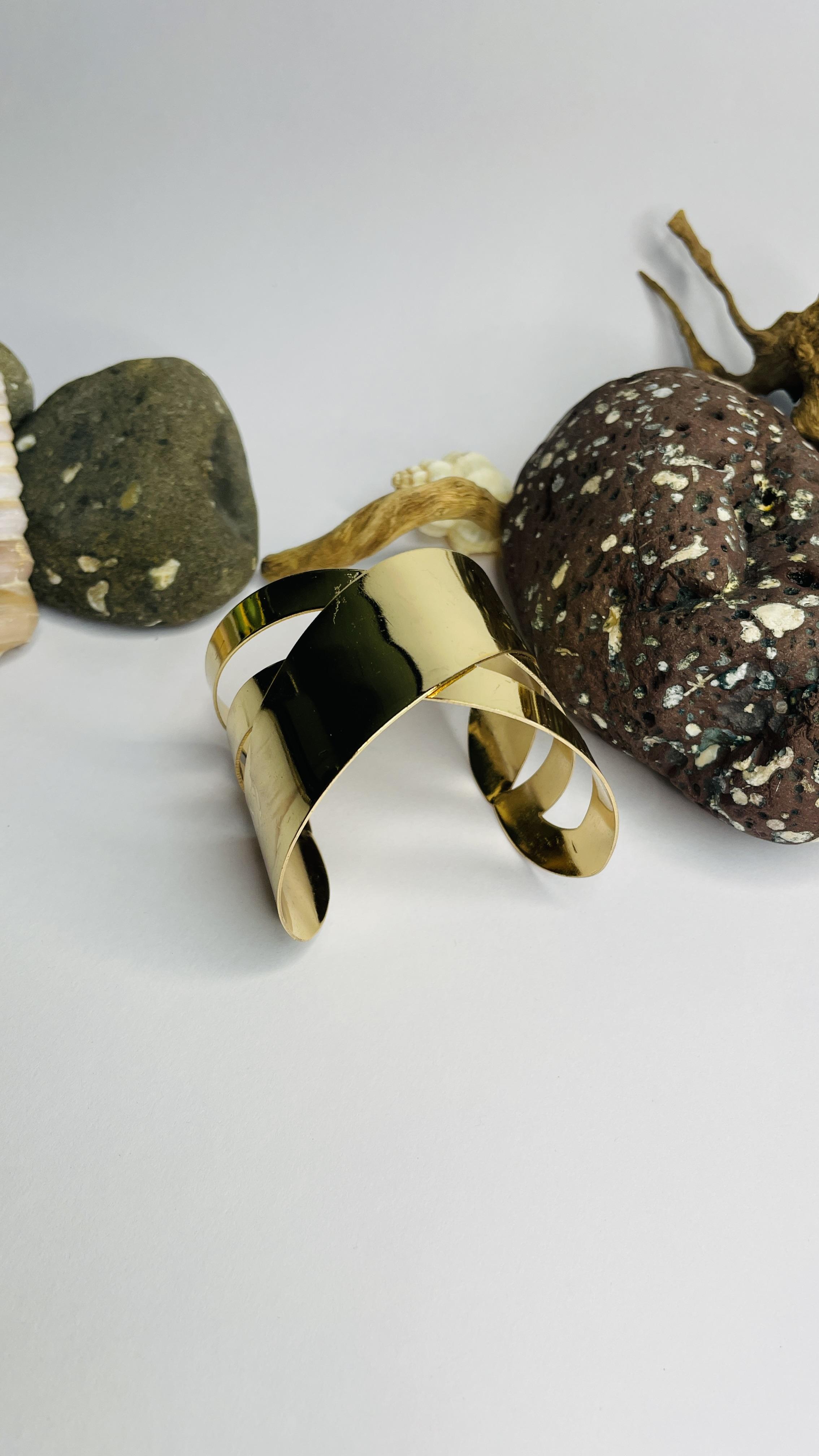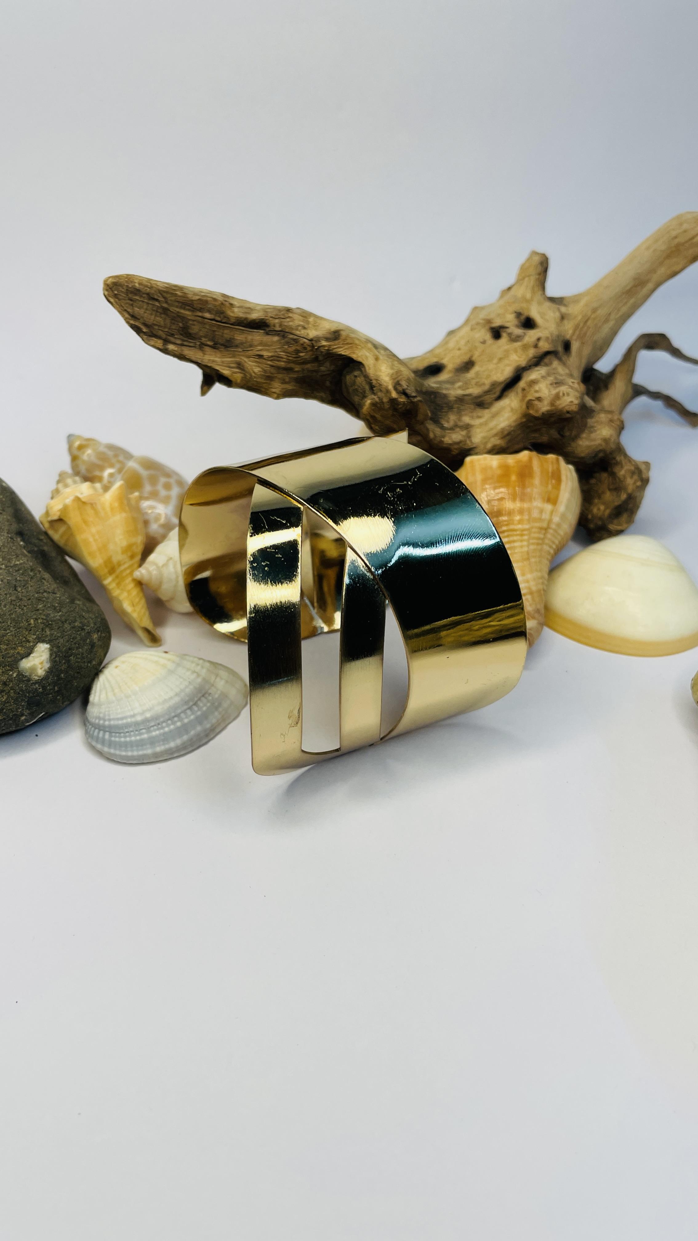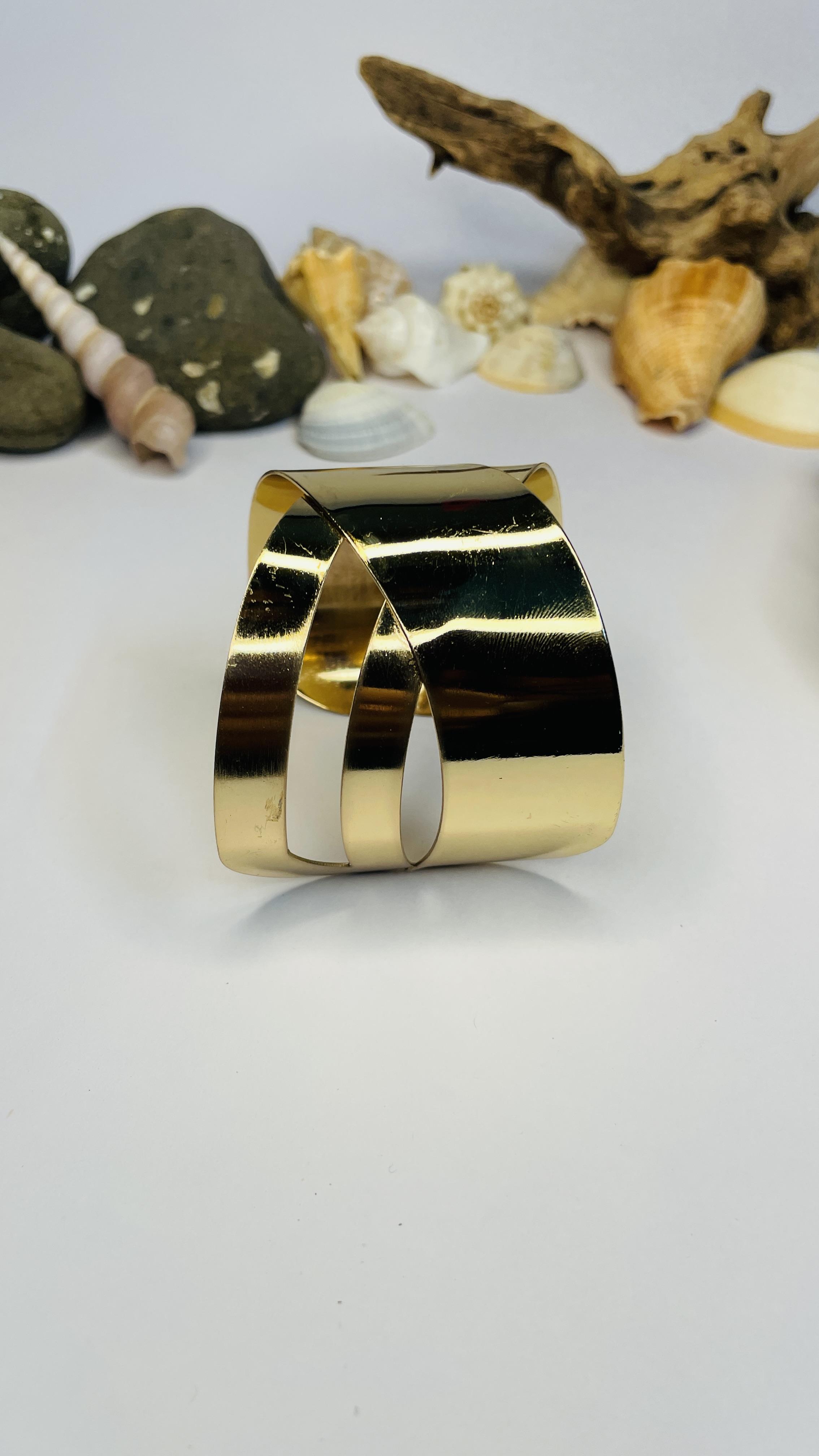 Modern Sculptural Design: Twisted open-cuff with a luxurious gold-tone texture